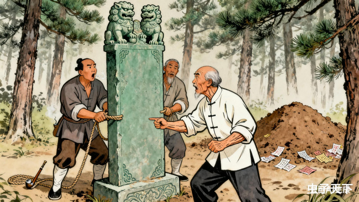 赵五爷指着坟地四周:“你看,这坟后是断壁,前是沟,左缺树右少石,本就犯了孤坟煞。你再立这三尺高的青石碑,碑顶还刻俩石狮子,这不等于把煞气皆堵在坟里,回头得冲家里男丁啊!”