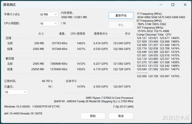 接下来使用7zip鉴别测试6000Mhz、6000Mhz+D5黑科技形态2种形态。