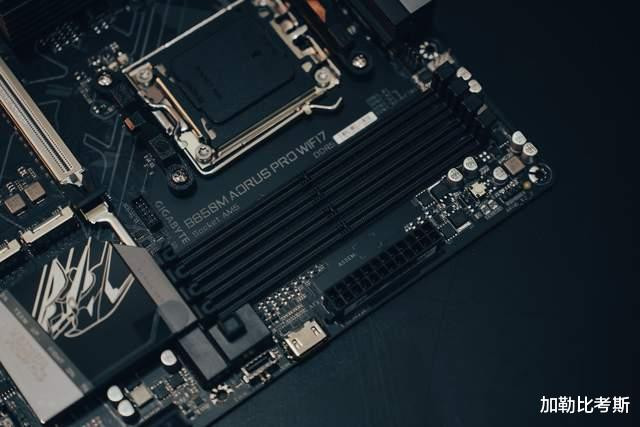 内存优化是技嘉的看家本领,该主板领有四根DDR5插槽,搭配锐龙9000系列最高支持DDR5 8400 MT/s。