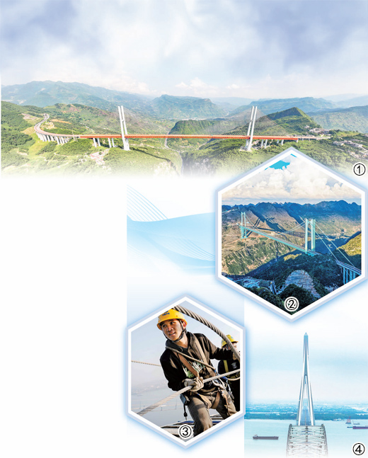 图①:横跨云贵两省的北盘江大桥。胡攀学摄(影像中国)