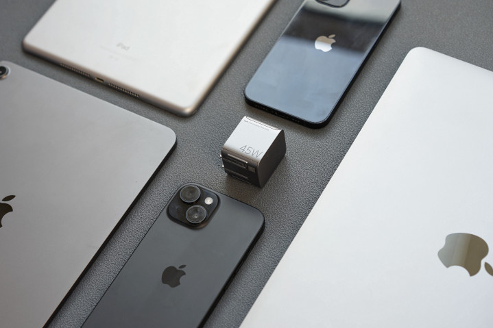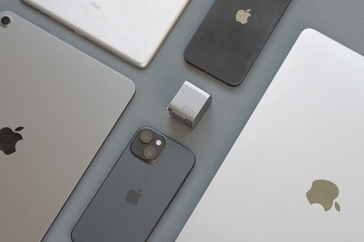 颜值党也十足不错冲!钛银灰的金属质感机身,搭配顶部微哑光透明面板,上头还有3D丝滑纹理,摸起来温润细腻无比。尤其是和iPhone同款的R角计算,持在手里抱成一团,不像平庸充电器那样有生硬的棱角。日常放在桌面充电,十足不突兀,反而有点科技感小摆件的好奇艳羡。